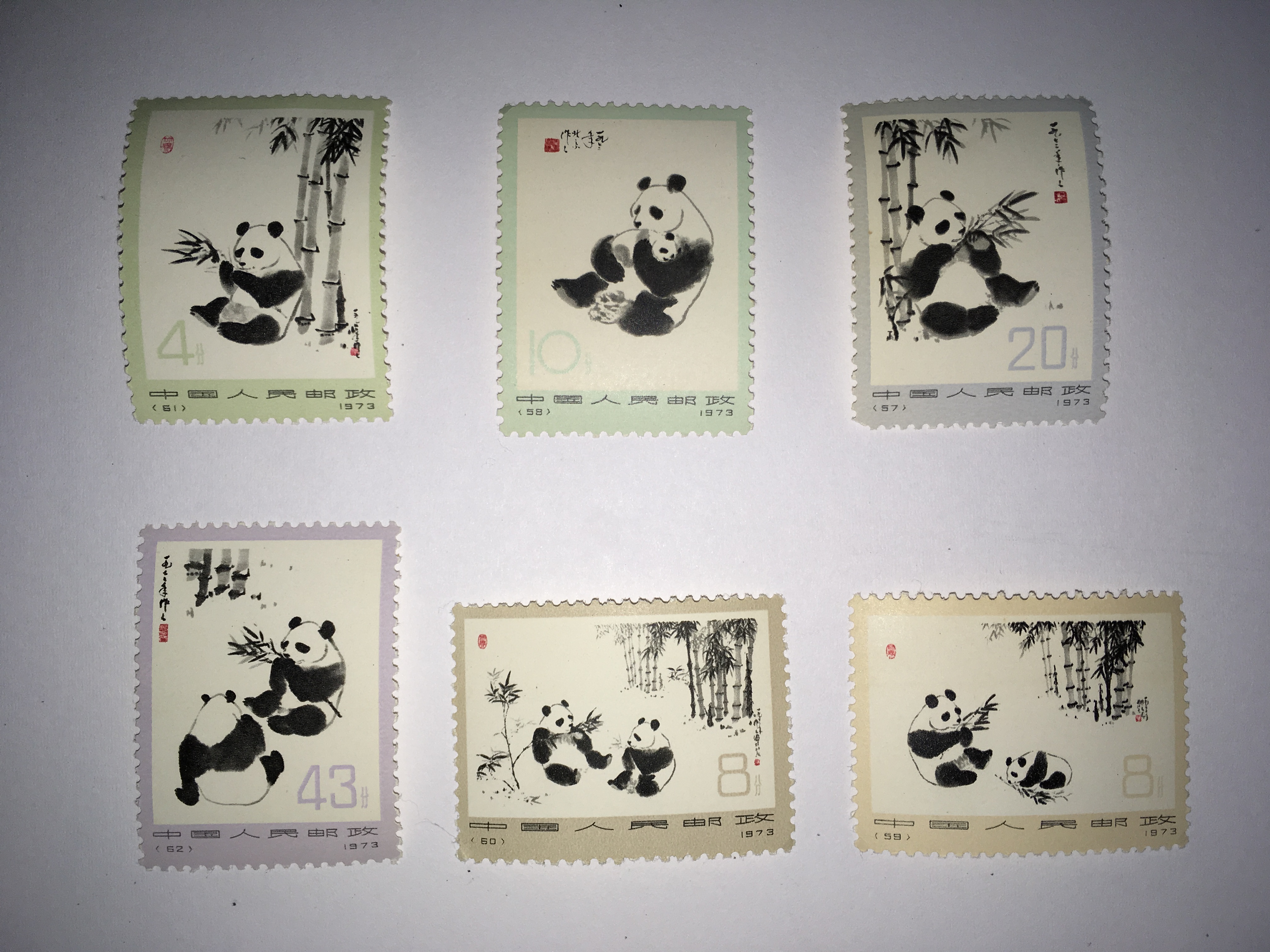 こちらの中国切手は大パンダといって6種で1セットの切手です。