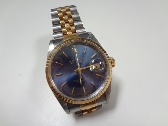 こちらロレックスのデイトジャストを出張買取にて買わせて頂きました!珍しい紺色の文字盤です☆