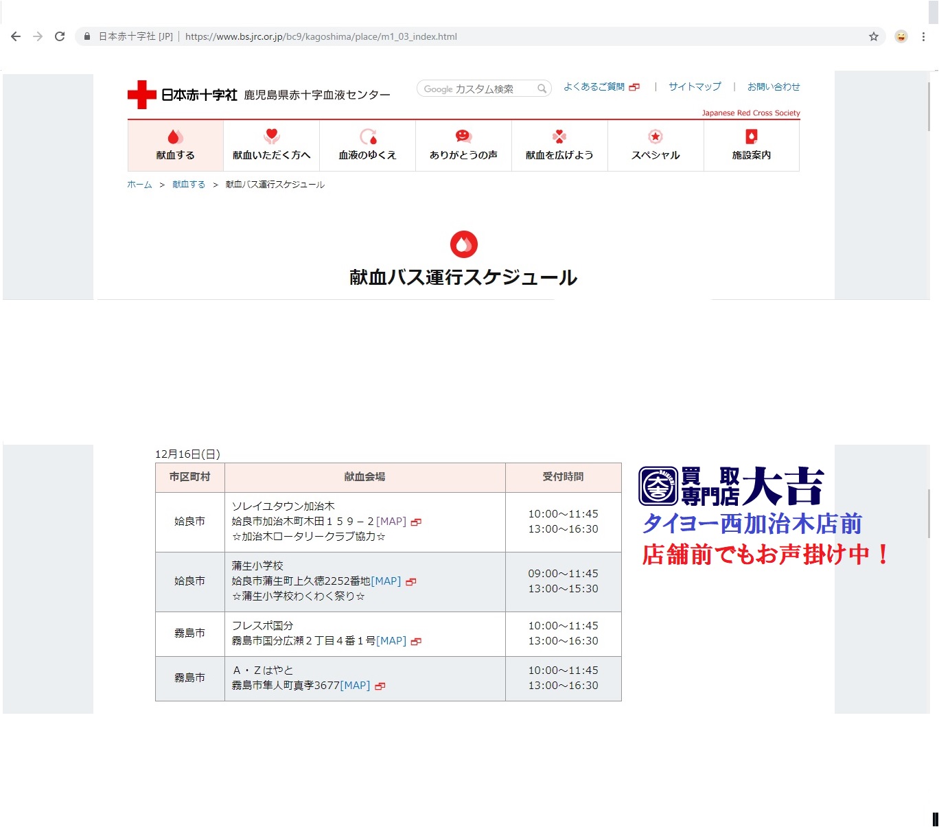 合言葉は「献血しました!」です。今日は献血カーが来ています!姶良市・買取専門店大吉タイヨー西加治木店は地域貢献も精一杯致します! | タイヨー西加治木店