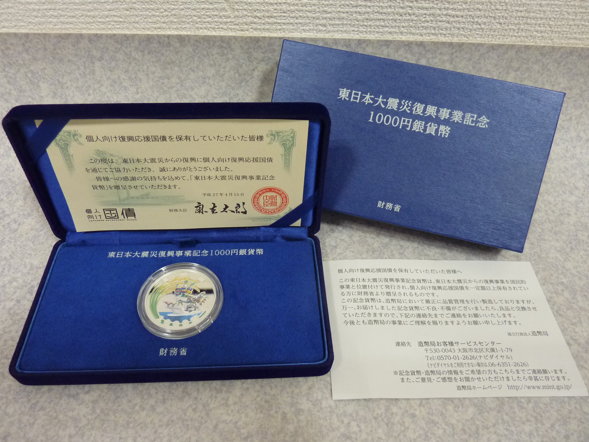 東日本大震災復興事業記念1000円銀貨幣プルーフ貨幣セットをお買い取りさせていただきました!