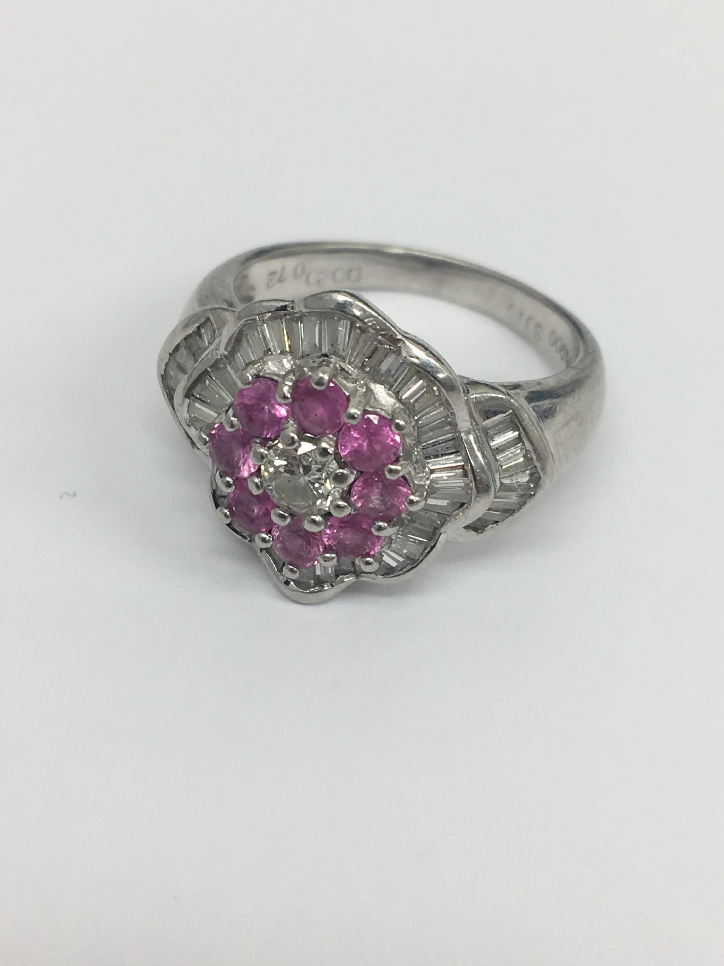 ダイヤモンドの周りにピンクサファイアが散りばめられており、とってもキュートですね!!