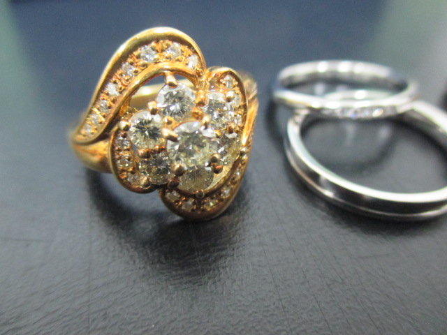 K18のダイヤ付リング Pt950のデザインリングですっ