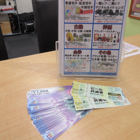 図書カード、テレホンカード、収入印紙、クオカード、ビール券、おこめ券など数多くの商品券の買取りをしております。