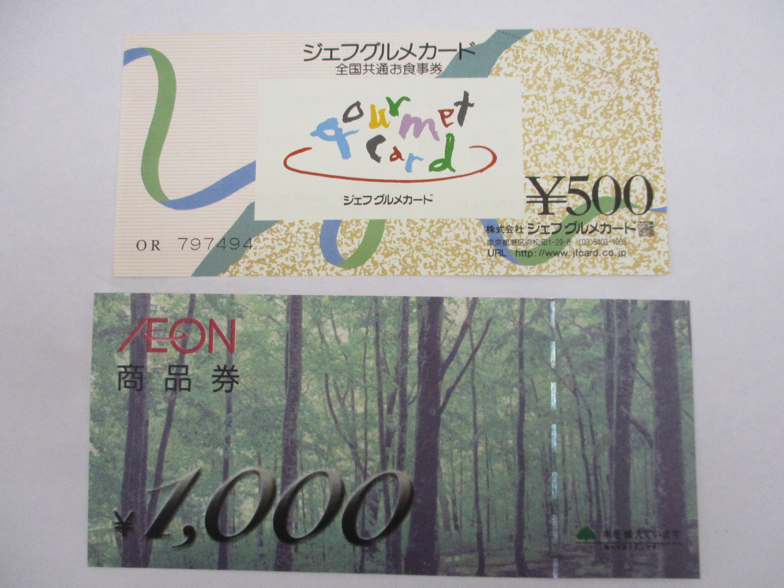 金券のイオン商品券とジェフグルメカードの買取です。