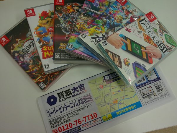 皆様こんにちわ。いつも買取大吉加世田店をご利用下さりありがとうございます!先日、switchのゲームソフトを複数点お譲り頂きました。ご来店下さったお客様、誠に有難う御座いました。お写真のようなロングセラータイトルは未だ人気があり意外なお値段になる可能性があります!ゲームをクリアされて長らく遊んでいないお品物などご売却・処分をご検討中の方、是非お気軽に当店にお持ち込み下さい!またSwitch以外にも、プレイステーションのゲームや昔のファミコンなどの...