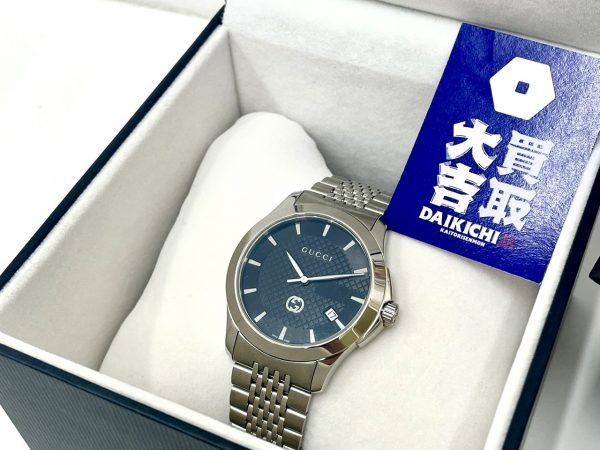 人気ブランド時計 高価買取❗❗こんにちは😲😲半田市でお買い取りなら、買取大吉フィールエクボ半田店へ😄😄昨日もご来店、お問い合わせ、ありがとうございました🙇♂️🙇♂️【GUCCI】Gタイムレス時計 をお買い取りさせていただきました❗❗数ある買取店の中から、当店をお選びいただき、ありがとうございます❤️ご自宅に昔使っていたり頂いたけどそのまま眠らせているブランドの腕時計はございませんか❓人気のブランドでしたので、高価買取させていただきました👍自動...