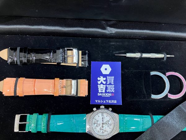 FolliFollie着せ替えクオーツセットをお買取致しました。電池切れのまま長年保管されていたオシャレな腕時計。使わないのであれば、ご自宅で長年保管される前に買取大吉マルシェ下北沢店にお売り下さいませ。★クオーツ時計は電池切れのまま保管をされますとボタン電池の液漏れが発生する事もございます。★お買取させて頂く際には運転免許証・健康保険証・マイナンバーカードパスポート・在留カードなどの「ご本人確認書類」をお忘れ無くお持ち下さいませ。★無料査定だけ...
