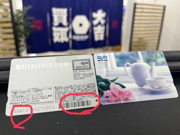 皆様おはようございます‼️買取大吉 スーパー・キッド新外店です👏さて、お買取のお品物のご紹介をします!!クオカードのお買取♪クオカードについて注意点!!赤丸の番号が00から始まるもの、店頭発行カードと記載されているものは、コンビニで残高証明を発行してもらわないとお買取が出来ません😮行ったり来たり大変かと思いますので、ご売却検討の方は今一度ご確認ください😊https://www.kaitori-daikichi.jp/store/superkid-...