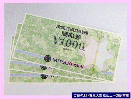 【買取実績】全国百貨店商品券・ご来店ありがとうございます!商品券を真摯に査定し、高額査定でお買い取りさせていただきました・・・✅ お気軽にご来店ください ❝笑顔で明るく爽やかな❞おもてなし査定! ✅あなたの町の買取専門店 ご縁のよい買取大吉松山上一万駅前店! ✅キャンペーン情報! 2025年6月6日-OPEN ✅ご来店・ご成約のお客さま⇒日用品・食品・お菓子プレゼント! ✅ フジ商品券¥5000.~¥2000.が必ずもらえる、ポイントカード&ご紹...