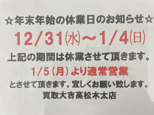 皆様おはようございます💕大吉高松木太店です❣️本日も元気いっぱい営業中です🤗初めてご来店のお客様より金貨や金縁メガネをお買取させて頂きました❣️当店をご利用頂きありがとうございます♡生前整理や遺品整理などでお品物お持ち頂く事増えております❗️なんでもお持ち下さい☺️1点1点しっかりお査定させていただきます✨現在の金相場は💹24,571円/g(※2025年12月25日(木)時点の国内金相場です❗️買取金額を保証する物ではございません)高いうちにご売...