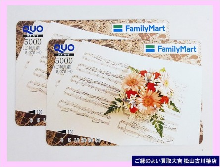 【買取実績】クオカード商品券・ご来店ありがとうございます!商品券を真摯に査定し、高額査定でお買い取りさせていただきました・・・✅ お気軽にご来店ください ❝笑顔で明るく爽やかな❞おもてなし査定! ✅あなたの町の買取専門店 ご縁のよい買取大吉松山古川椿店! ✅キャンペーン情報! 2022年9月9日-OPEN ✅ご来店・ご成約のお客さま⇒日用品・食品・お菓子プレゼント! ✅ フジ商品券¥5000.~¥2000.が必ずもらえる、ポイントカード&ご紹介カ...