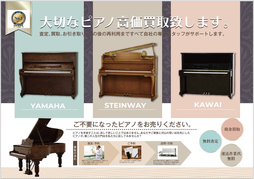 買取品目の幅広い当店ではピアノも積極的に買取しております!ピアノを売りたいけどどこで売ったらいいのかわからない・・とお困りの方は『大吉羽曳野店』にお問い合わせください。ヤマハ・カワイ・アポロなどピアノの高価買取に自信があります🎹査定料、引取料などは一切掛かりませんので、ご安心ください💛・出張買取羽曳野市・藤井寺市・松原市・富田林市・美原区・太子町上記以外のエリアでもお伺い致します。・宅配買取一部の対象品を除き全国より宅配買取を承っています。ご依頼...