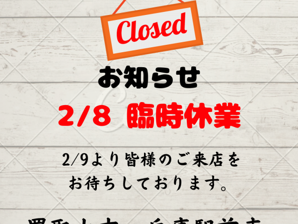 皆様こんにちは☺買取大吉 兵庫駅前店店長の山口です!臨時休業のお知らせです!2024年2月8日が休業になりますので、ご理解頂けると幸いです。2月9日の10時~通常通り営業開始予定ですので、皆様のご来店を心よりお待ちしております!スマホ、シャネル、ルイヴィトン、ロレックス等買取強化中です!ブランド物や貴金属を売るなら迷わず兵庫駅前店へお越しください豊富な買取品目もご用意しております◎(切手、テレカ、スマホ、茶器、陶器、電化製品、その他諸々)お気軽に...