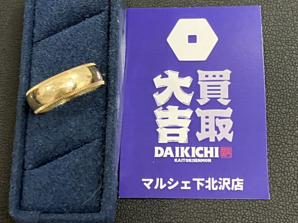 買取大吉マルシェ下北沢店です。14金の指輪をお買取致しました。かつて愛用していたけれどサイズが変わって使えなくなった指輪ご自宅に眠っていませんか?この先使うことが無いのであれば金高騰中の今が売り時です!!そのほか、日付やイニシャルが刻まれた結婚指輪などもお買取可能です。★査定はすべて無料です。無料査定ご利用のお客様に洗剤・ティッシュ・トイレットペーパー・キッチン用品など...選べる生活雑貨のプレゼントがございます。★当店は金の買取手数料は頂きませ...