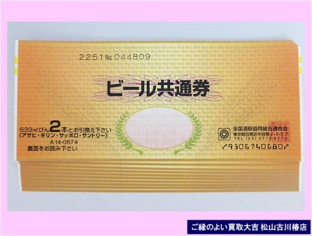 【買取実績】ビール共通商品券・ご来店ありがとうございます!商品券を真摯に査定し、高額査定でお買い取りさせていただきました・・・✅ チョット気軽にご来店❝笑顔で明るく爽やかな❞おもてなし査定! ✅ コンビニ気分で立ち寄れる、地域に愛される ご縁のよい買取大吉松山古川椿店 ✅ お気軽にご来店できる買取専門店⇒買取大吉№.1店舗! ✅チラシ・ネットを見てのご来店、リピートでのご来店、ご紹介でのご来店、誠にありがとうございます♪ ✅ ❝笑顔で明るく爽やか...