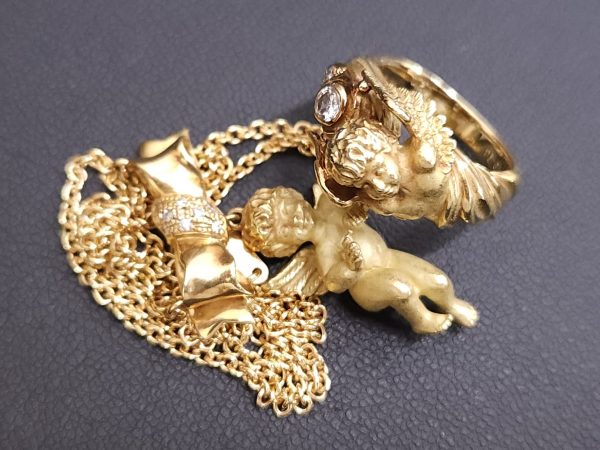こんにちは!!池田・石橋・箕面・桜井・豊中・川西周辺にお住まいの皆さま!!買取大吉 石橋駅前店のブログをご覧いただきありがとうございます!本日はこちらのK18のジュエリーを高価買取りしました!エンジェルのデザインが素敵なK18のネックレスとリングです♪金は変色しにくく耐久性に優れているため、高い価値があることでも知られています。全体の4分の3を金が占めている18金は、とてもやわらかい材質で、加工がしやすくジュエリーの素材として向いています。さらに...