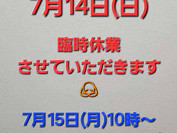 【臨時休業のお知らせ】こんにちは❗❗池田・石橋・箕面・桜井・豊中・川西周辺にお住まいの皆さま😀買取大吉 石橋駅前店です✨7月14日(日)臨時休業させていただきます🙇7月15日(月)10時〜通常営業となります🎵ご迷惑お掛けいたしますがよろしくお願いいたします🙏=======================買取大吉 石橋駅前店🏣563-0032大阪府池田市石橋2-2-11-1F営業時間:10:00~19:00定休日:火曜日(年末年始、一部を除く):...