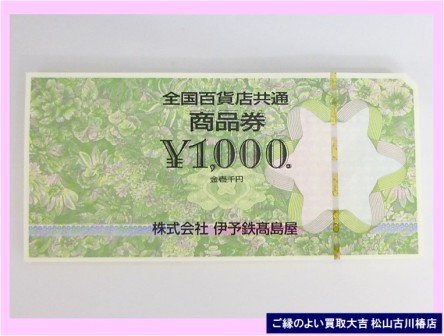 【買取実績】全国百貨店商品券・ご来店ありがとうございます!商品券を真摯に査定し、高額査定でお買い取りさせていただきました・・・✅ お気軽にご来店ください ❝笑顔で明るく爽やかな❞おもてなし査定! ✅あなたの町の買取専門店 ご縁のよい買取大吉松山古川椿店! ✅キャンペーン情報! 2022年9月9日-OPEN ✅ご来店のお客さま⇒ティッシュP・食器洗剤・お菓子、1個プレゼント! ✅ フジ商品券がもらえる、嬉しいポイントカード&ご紹介カード発行中! ✅...
