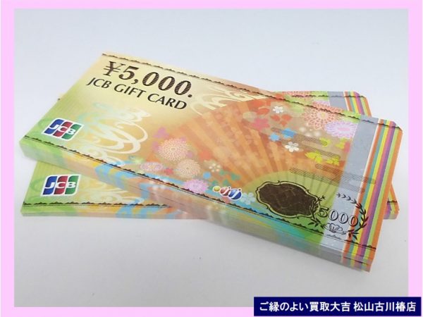 【買取実績】JCBギフト商品券・ご来店ありがとうございます!商品券を真摯に査定し、高額査定でお買い取りさせていただきました・・・✅ お気軽にご来店ください ❝笑顔で明るく爽やかな❞おもてなし査定! ✅あなたの町の買取専門店 ご縁のよい買取大吉松山古川椿店! ✅キャンペーン情報! 2022年9月9日-OPEN ✅ご来店・ご成約のお客さま⇒日用品・食品・お菓子プレゼント! ✅ フジ商品券¥5000.~¥2000.が必ずもらえる、ポイントカード&ご紹介...