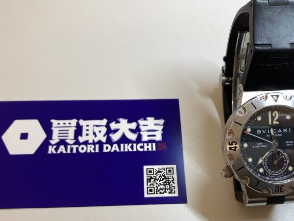 群馬県西毛地区の皆様♪(´▽`)高崎高関店のブログをごらんいただき、ありがとうございます🤗【お買取商品】⌚BVLGARI ディアゴノスクーバGMT⌚欲しいもの物があると言う事でお買取りさせていただきました😊ダイバーズモデルのデザインに新定番ともいえる斬新さを打ち出したブルガリのスクーバ。このGMTモデルは防水性はそのままに、新たにGMT機能を追加したスペシャルモデルです。もう使わずにお家で眠っている腕時計などお持ちでしたら、大吉で無料査定してみま...