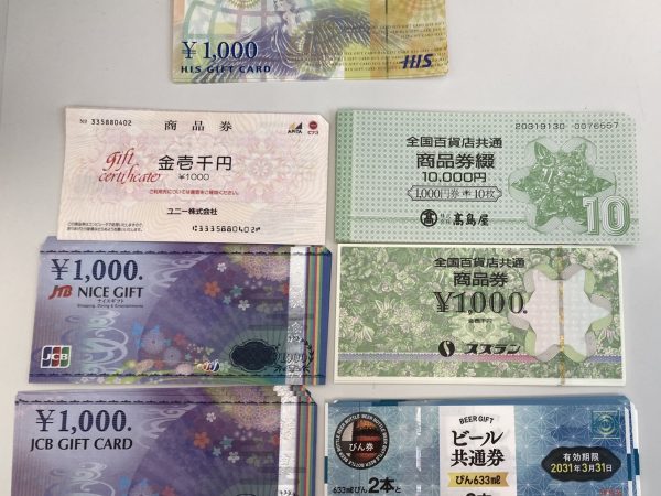 群馬県西毛地区の皆様♪(´▽`)高崎高関店のブログをごらんいただき、ありがとうございます🤗【お買取商品】💶商品券💶 JCBギフトカード・全国百貨店共通商品券 ユニー商品券・H.I.S.ギフトカード・ビール券使う予定がないからと、お持ち込み頂きました🤗ショッピング、お食事、旅行など、さまざまなシーンで使える商品券ですが現金のほうが便利…ということでお持ち頂きました🤗旧デザインは価値さがります💦旧デザイン お持ちでしたら、お早めに😊金券1...