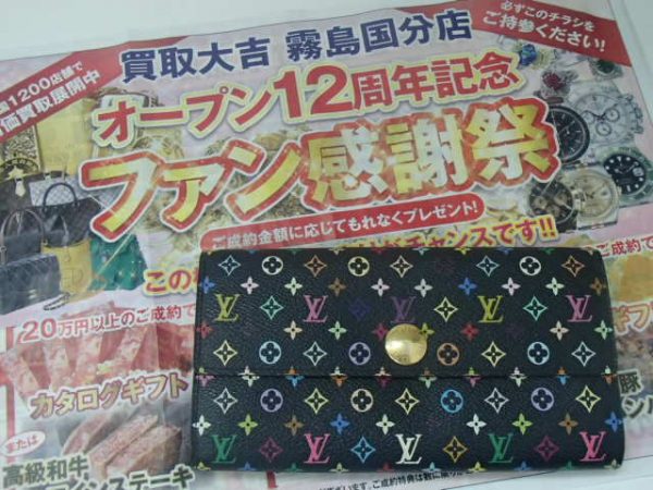 鹿児島、霧島市、姶良市、曽於市、都城市、国分、隼人、加治木にお住いの皆さま・お仕事されてる皆さま、こんにちは!オープン12周年記念ファン感謝祭開催中の霧島市の買取大吉霧島国分店です。本日もブランド財布のお買取です!人気ブランドのルイヴィトンの定番のお財布のマルチカラーをお買取させていただいております!ルイヴィトン製品の中でもマルチカラーの製品は相場があがりましたので、予想以上の高価買取となりました!ルイヴィトン製品のお買取も霧島市の買取大吉霧島国...