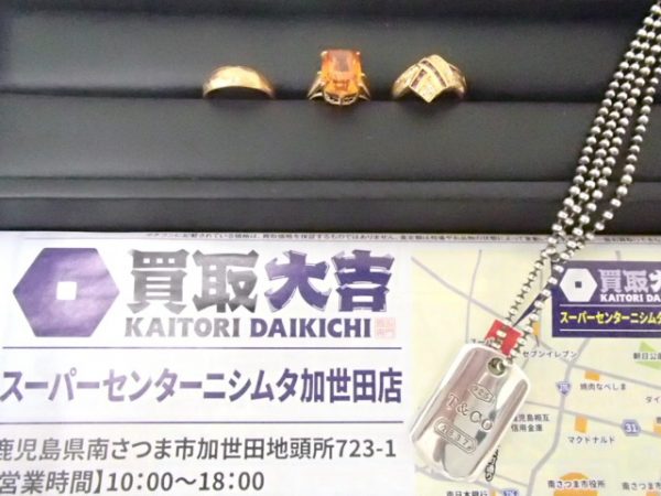 南さつま市、加世田、笠沙、大浦、坊津、金峰、鹿児島市、枕崎市、日置市、南九州市にお住いの皆さま・お仕事されてる皆さま、こんにちは!南さつま市加世田の買取大吉スーパーセンターニシムタ加世田店です!本日も連日の酷暑を吹き飛ばす高価お買取を実施中です!!本日は数十年前にご購入されずっとご自宅で眠っていたネックレス・指輪などをお買取いたしました。お客様も大満足のお買取金額となりました!金相場が上がっている今がチャンスです!!ダイヤ・色石もしっかりと査定い...