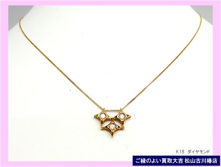 【買取実績】K18ダイヤ付きネックレス・ご来店ありがとうございます!ダイヤモンドとK18金製品は当日の金相場で真摯に査定し、高額査定でお買い取りさせていただきました・・・✅ お気軽にご来店ください ❝笑顔で明るく爽やかな❞おもてなし査定! ✅あなたの町の買取専門店 ご縁のよい買取大吉松山古川椿店! ✅キャンペーン情報! 2022年9月9日-OPEN ✅ご来店・ご成約のお客さま⇒日用品・食品・お菓子プレゼント! ✅ フジ商品券¥5000.~¥200...