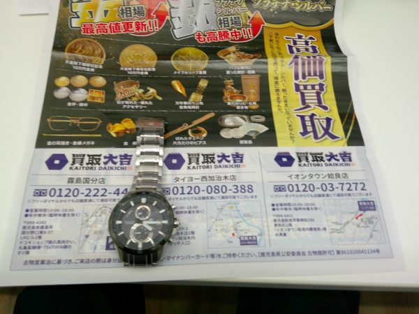 本日も姶良市・買取大吉イオンタウン姶良店こんにちは~腕時計を買取致しました。今朝も肌寒くて北風が昨日ほどでないですけど強いです。イオンタウン姶良では元気に営業中です。建物の中は暖かいです。腕時計を最近はめていない方が多く見られます。スマホを腕時計代わりにしている方が多いと思います。かくいう私も電池が切れたタイミングで腕時計とはおさらばしました。アラーム機能も色々設定できるし、音楽も設定出来て便利です。腕時計は冬物を羽織る際にひっかかったり大変でし...