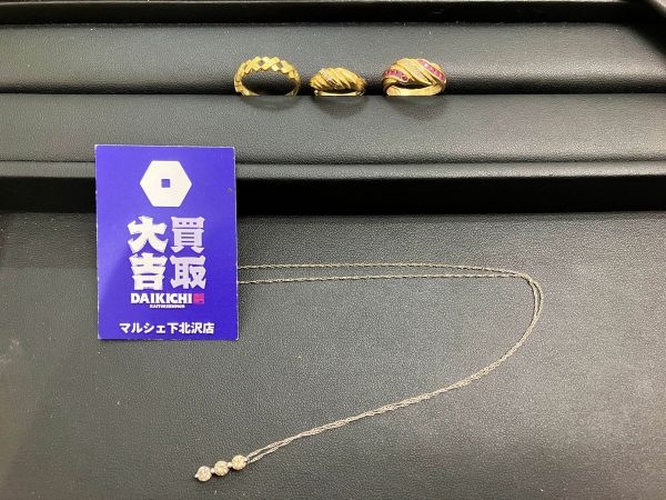 買取大吉マルシェ下北沢店 は下北沢駅徒歩1分です。--------------------------------------------------------18金リングと18金ホワイトゴールドネックレスをお買取いたしました。これらで軽く13万円超えです。本当に金価格の高騰にはびっくりですね。ご自宅に使っていない貴金属を何十万円と眠らせていませんか?是非、買取大吉マルシェ下北沢店.で無料査定をお受け下さいませ。買取大吉マルシェ下北沢店.では店...