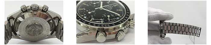 また、シーマスターやスピードマスター、コンステレーションなどのモデルの中には、裏蓋に刻印があるものがあります。偽物はこういった刻印の彫りが甘かったり、文字の彫り上げが雑だっだりと、やはり細部に雑さがみられます。