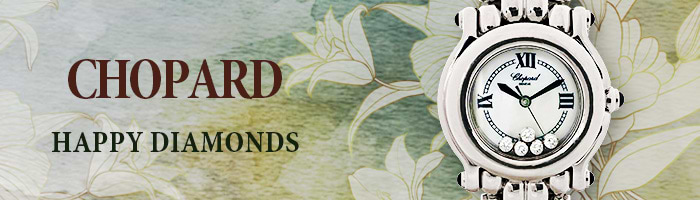 ショパールを代表する華やかで上質なコレクションです。最大の特徴は、二枚のサファイヤクリスタルの間で揺れるムービングダイヤで、ショパールの技術力と独創性が存分に表現されています。