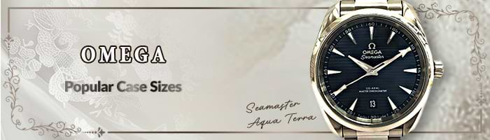 オメガはモデルによってケースの幅が広く、着用時の印象を大きく左右します。シーマスター アクアテラは控えめな「28」から、存在感のある「43」まで揃っています。