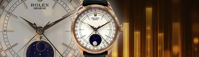 ロレックス チェリーニ ムーンフェイズは、月の満ち欠けを表示する機構を備えたモデルです。2017年に発表され、チェリーニコレクションで唯一の複雑機構搭載モデルとして注目を集めました。