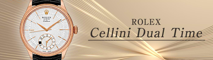 ロレックス チェリーニ デュアルタイムは、2つの異なるタイムゾーンの時刻を同時に表示できる、実用的な機能を備えたモデルです。