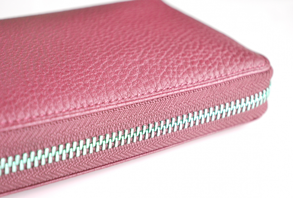 ライニングにシルクが使用されていますので、レザーを使ったものと比べた時に軽さが際立ち、カバンに入れていても重たくなく使いやすいです。ジップが角までありますので、ワイドにあけられ、スムーズに出し入れできます。また、内側生地の面積が広いため、裏地が見えやすいというメリットもあります。シルクインを堪能するなら長財布が一番おすすめです。
