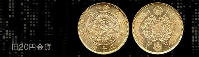 「旧20円金貨」は、明治時代初期に発行されていた金貨です。表面には、天皇を象徴する龍と「大日本・二十圓・明治三年」の文字が浮き彫りされています。