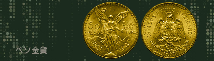 「ペソ金貨」は、1921年に初めて発行され、北米で最も古い金貨の一つとされています。2ペソ、2.5ペソ、5ペソ、10ペソ、20ペソ、50ペソの6種類があり、それぞれデザインに特徴があります。
