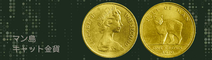 「マン島キャット金貨」は、イギリス王室領マン島自治政府により1988年から2012年まで毎年発行された純金製の収集型金貨です。表面にはエリザベス女王2世の肖像が配され、裏面には毎年変わる猫の意匠があしらわれています。