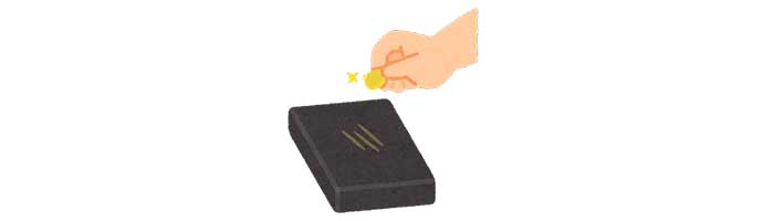 金製品を試金石に擦り付けて、試金石上に跡(条痕)をつけます。金は大変柔らかいため、この方法で跡がつきますが、純度が低かったり、メッキだったりすると金属の硬度が上がり、削り取れないことがあります。その場合、金ではない可能性があります。
