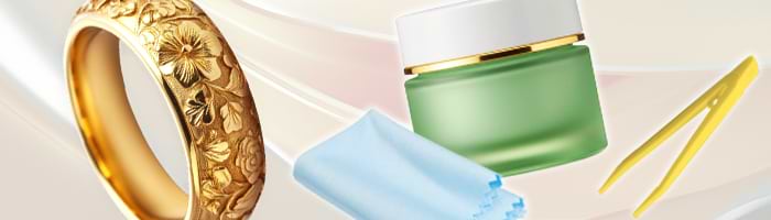 そのため、お手入れは使用後に研磨剤を含まない柔らかい布で軽く乾拭きし、定期的にゴールド製品用の液体クリーナーで洗浄することをおすすめします。