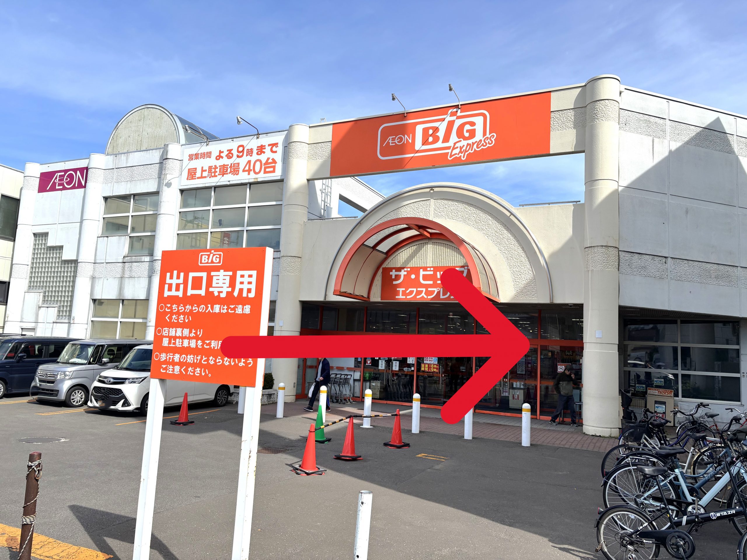 (店舗向かって右側のスロープを上った、大吉の看板前のスペース3台分が駐車場です)