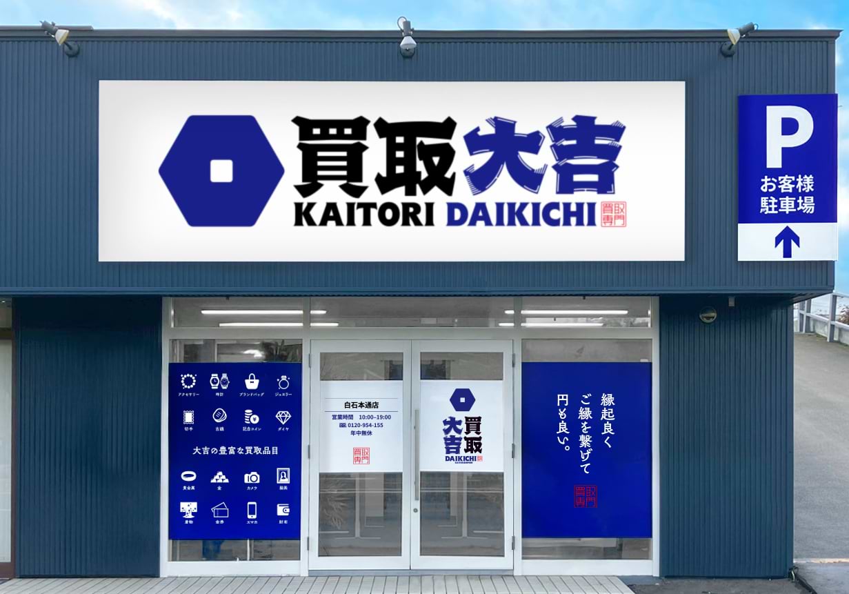 《JR線「白石駅」よりお車で4分》国道12号線沿い、青と白の看板が目印の買取大吉 白石本通店がオープンいたしました!