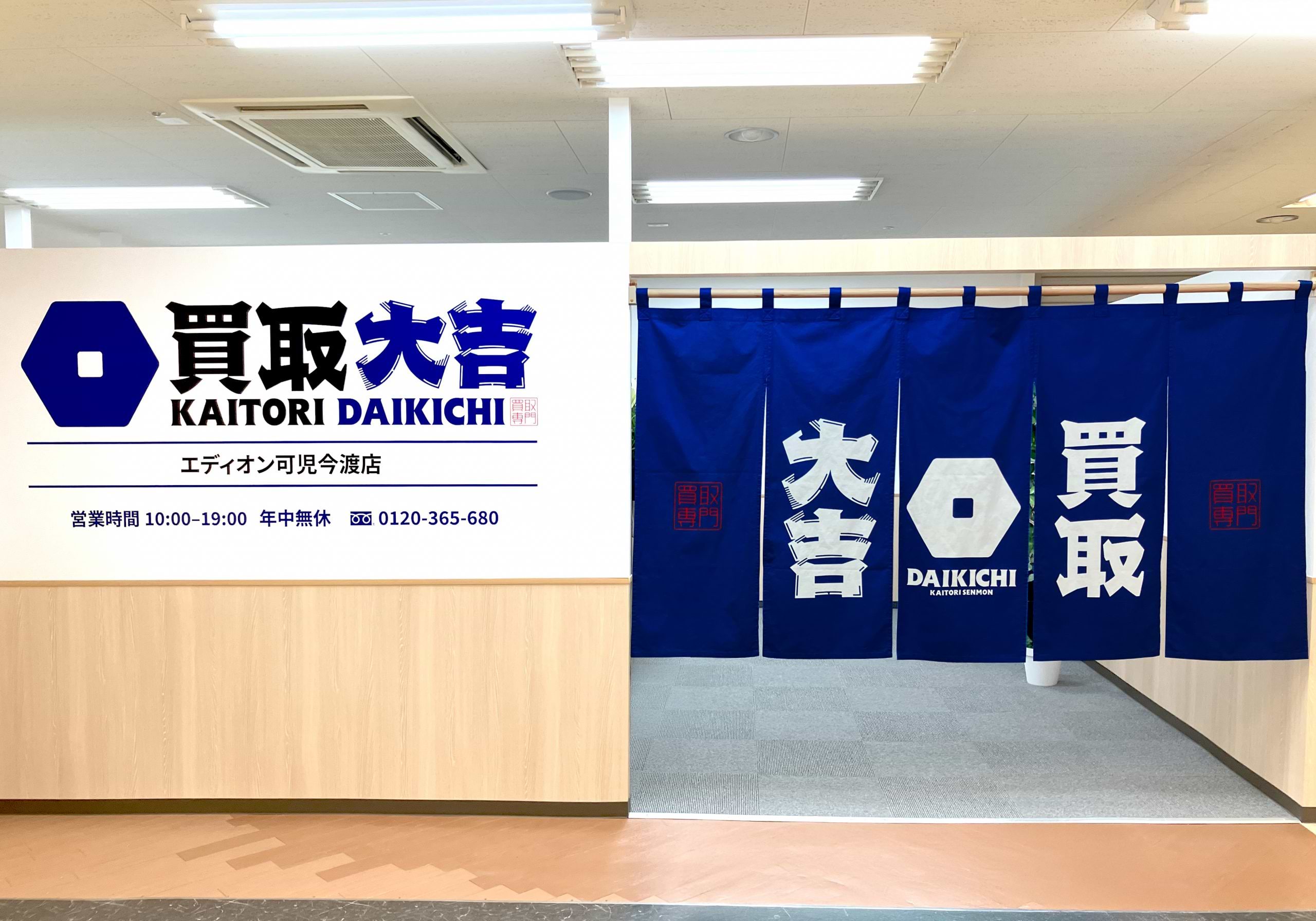 交通の便が良いエディオン可児今渡店内に青と白の看板が目印の買取大吉 エディオン可児今渡店がオープンしました!