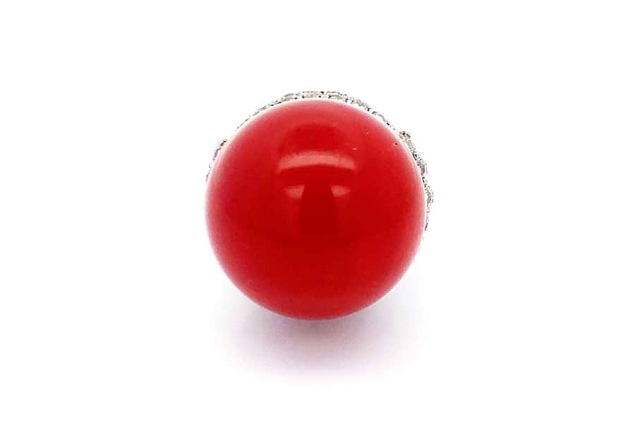 Pt900×珊瑚×ダイヤモンドリング 珊瑚直径約19.6mm MD1.13ct