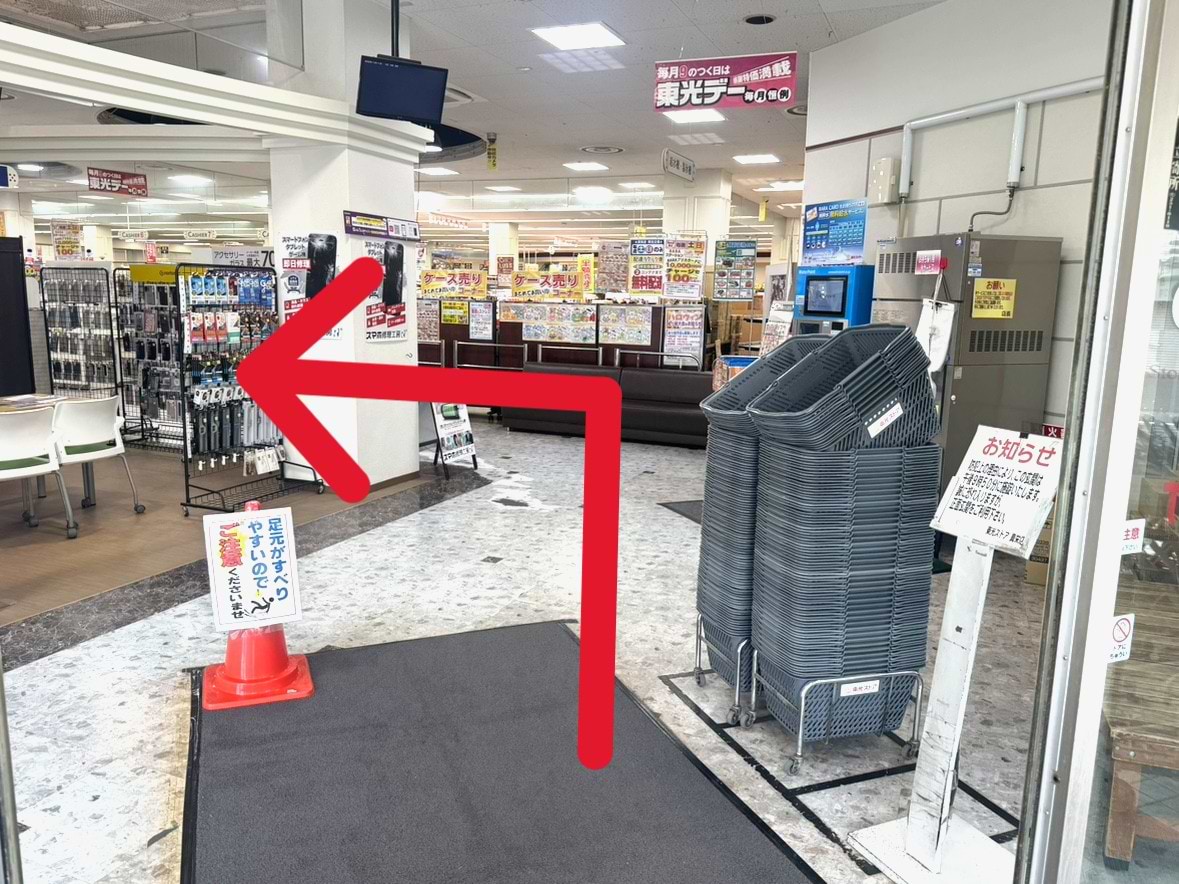 施設正面入口へ進みます。カート・かご置き場がある風除室を通り、店内入口へ入ります